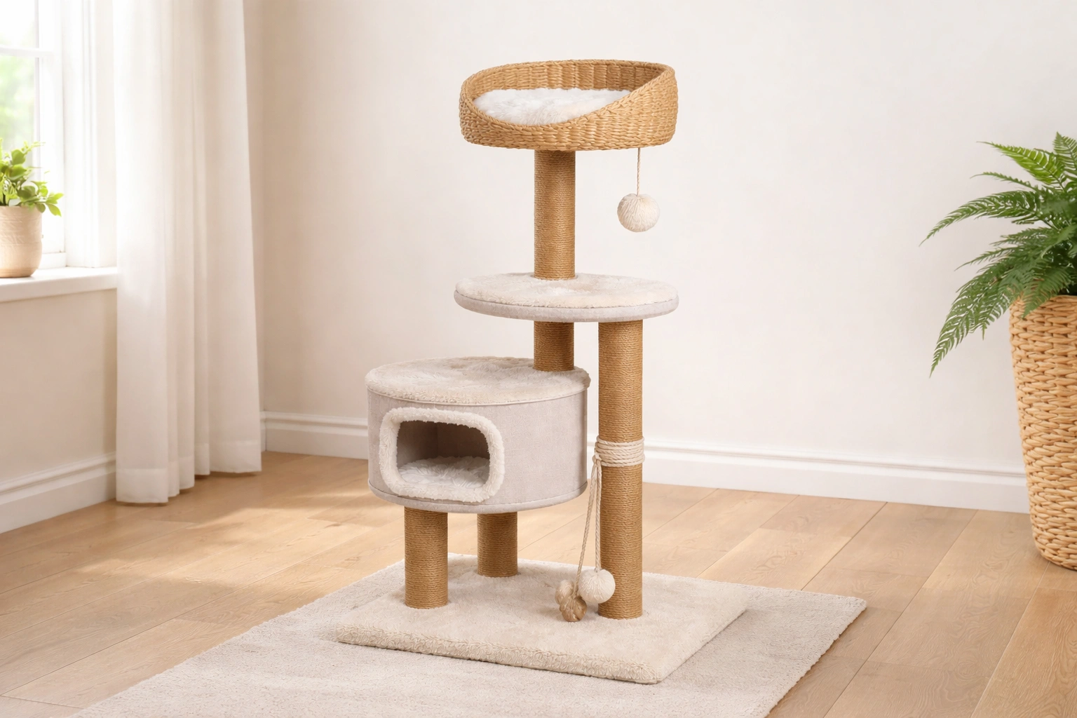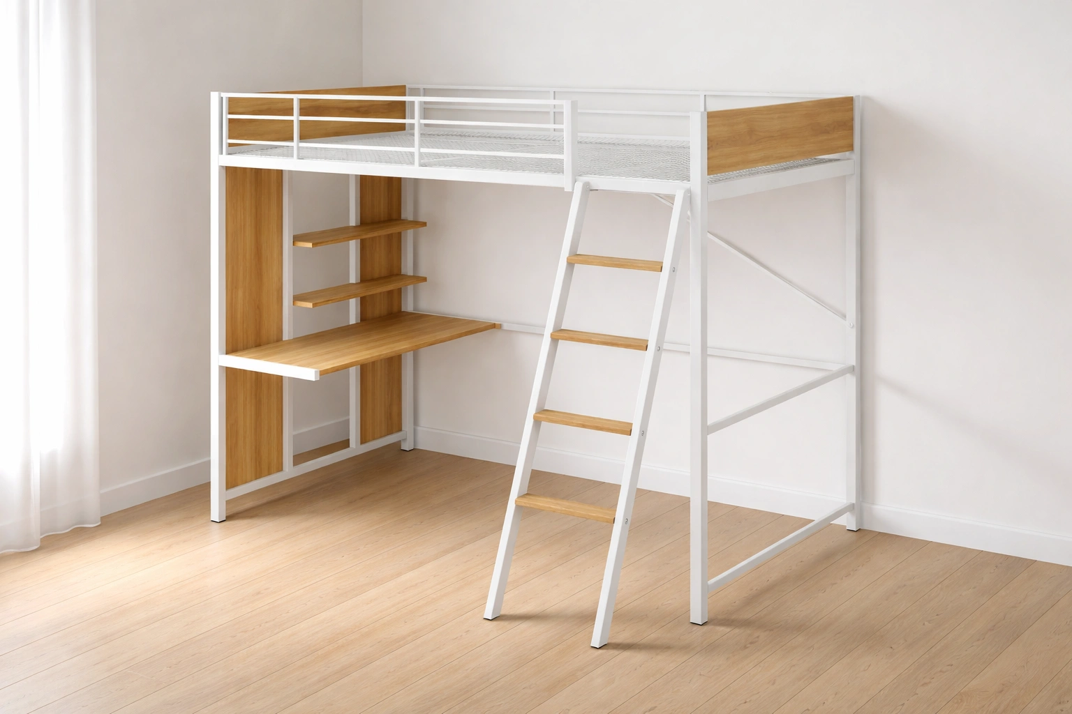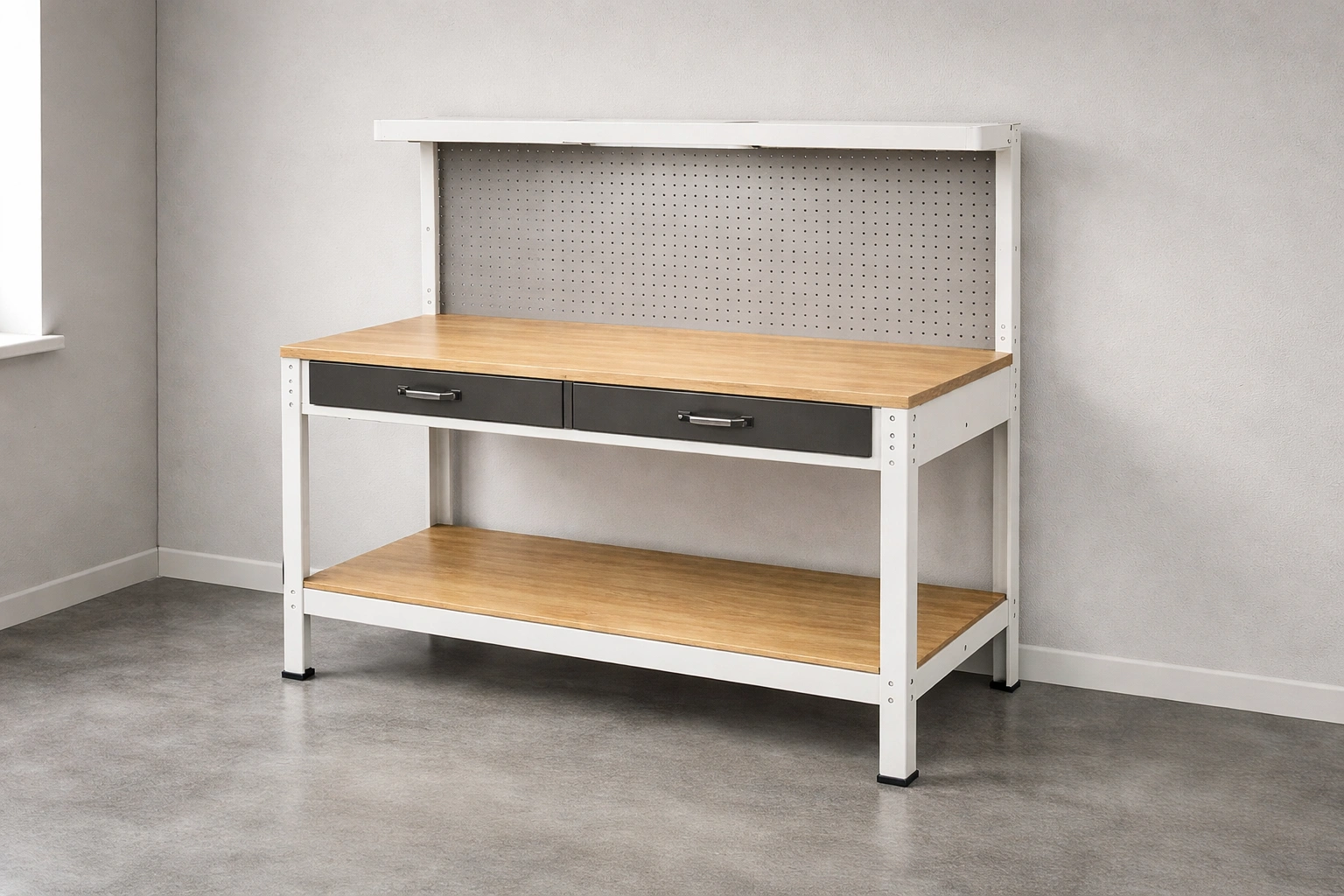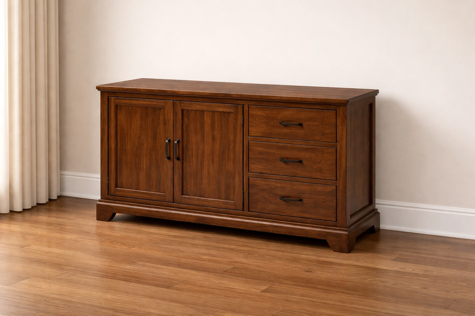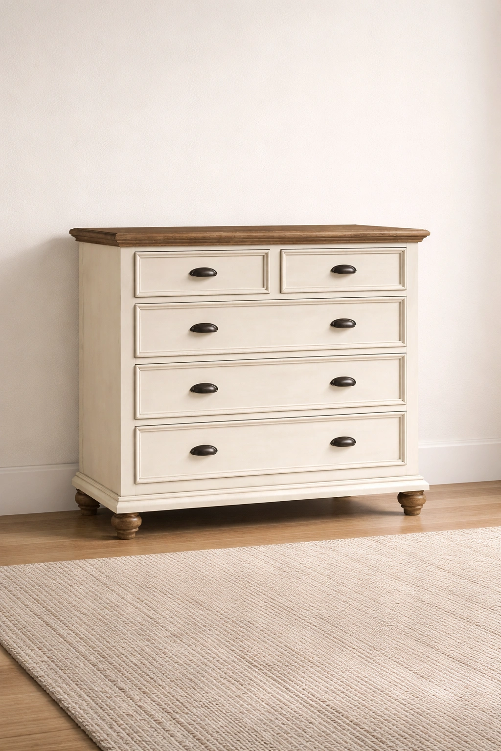 Armario de madera blanco y roble claro con 4 puertas y 2 cajones