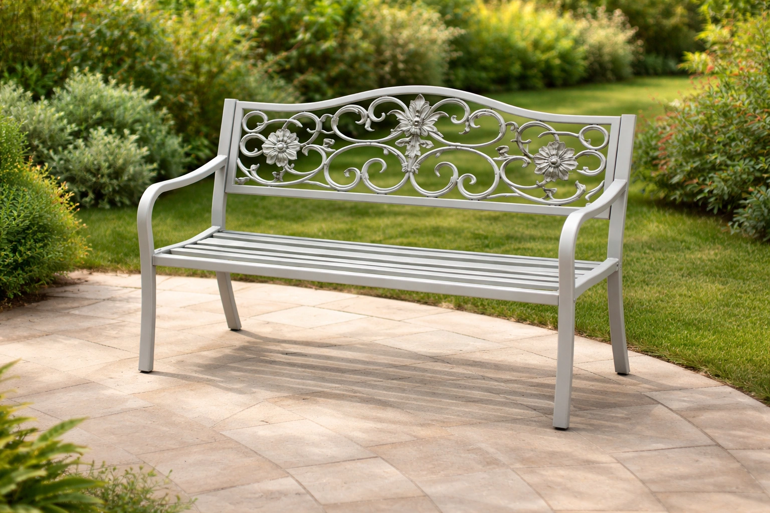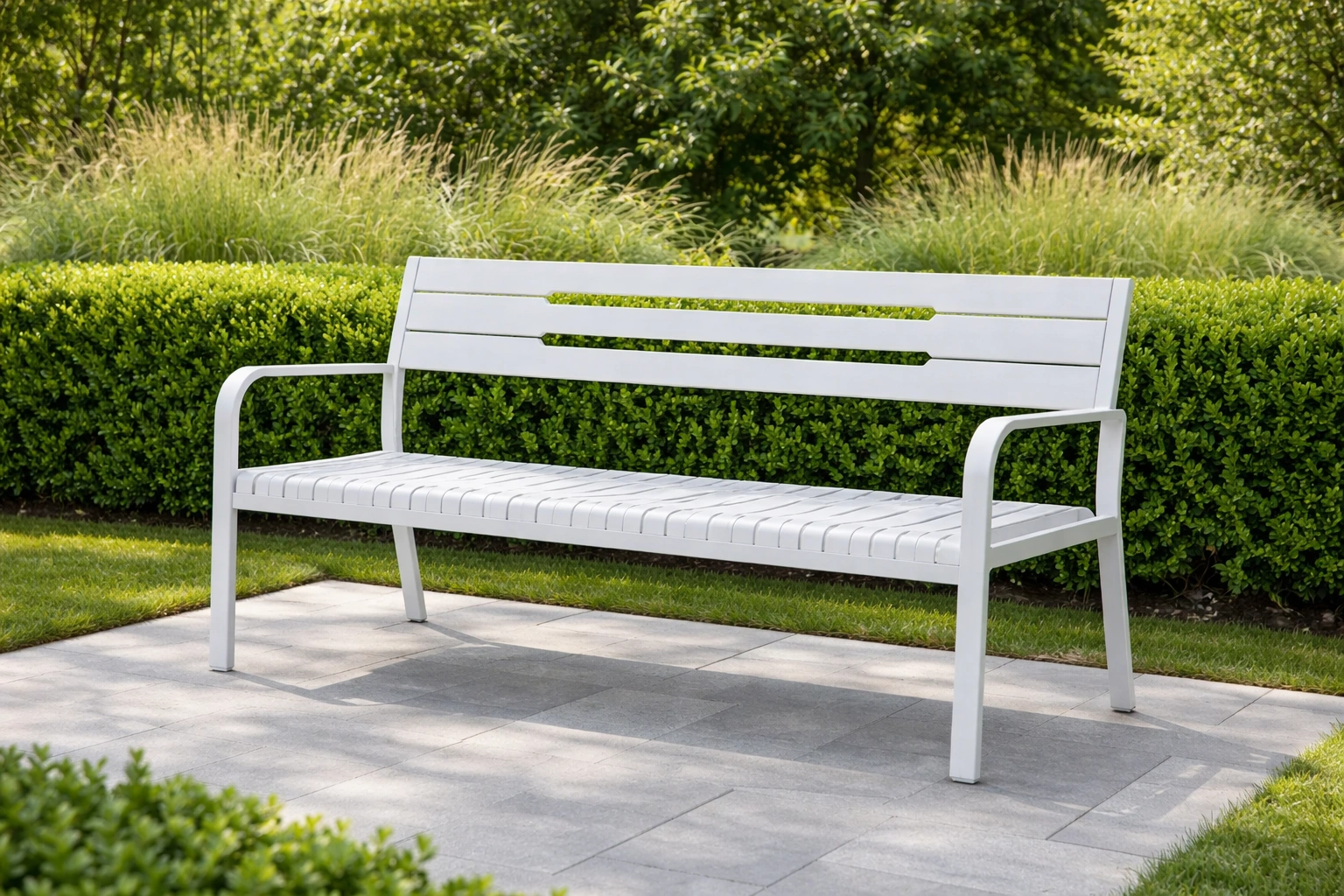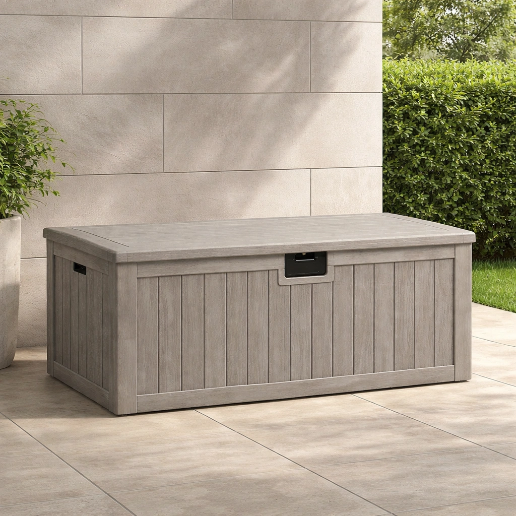 Baúl de almacenamiento de exterior de plástico gris y blanco 145x70x60 cm